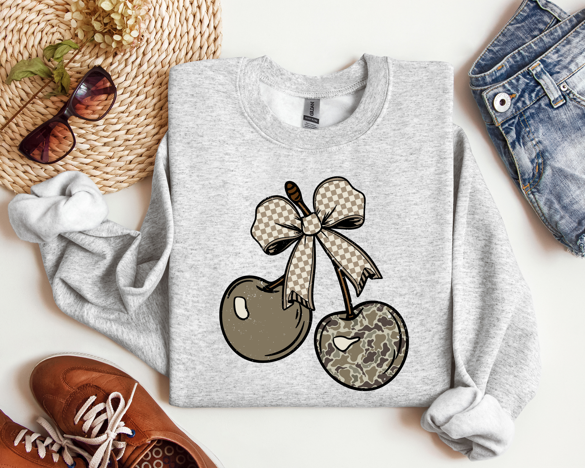 CAMO CHECKERED CHERRY BOW CREW